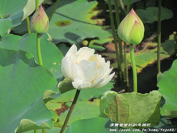 同心池裡大部份都是白荷花,但還沒盛開大部分都是含苞的狀態